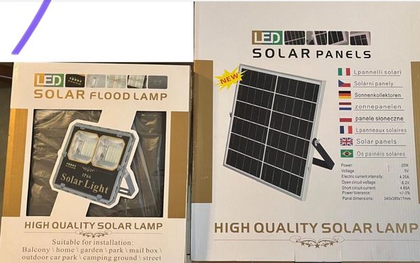 Paquete de 2 luces solares para exteriores de 2500 lm, 210 luces lLED de seguridad con control remoto, 3 cabezales de luces con sensor de movimiento, IP65 impermeable.